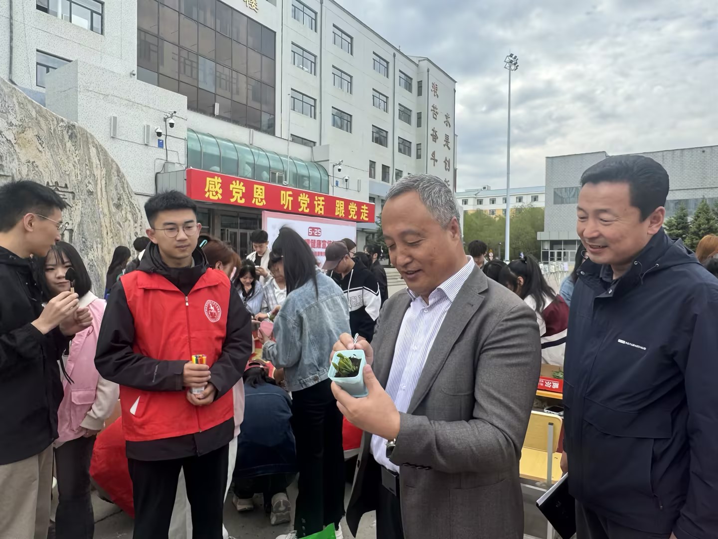 5月25日,艾佛森贝博ballbet官网“五育同心 健康同行”5·25大学生心理健康宣传教育月系列活动于8点30分在尚行楼前广场隆重启动。校党委委员、副校长李跃武,学生工作处副处长白松林、谢春辉、心理健康教育与咨询中心副主任邢丽娜、全体专兼职心理老师、各二级学院副书记,各学院团学办主任、副主任及辅导员参加了本次活动。本次活动由学生工作处心理健康教育与咨询中心主办,美术学院、旅游地理与历史文化学院承办。