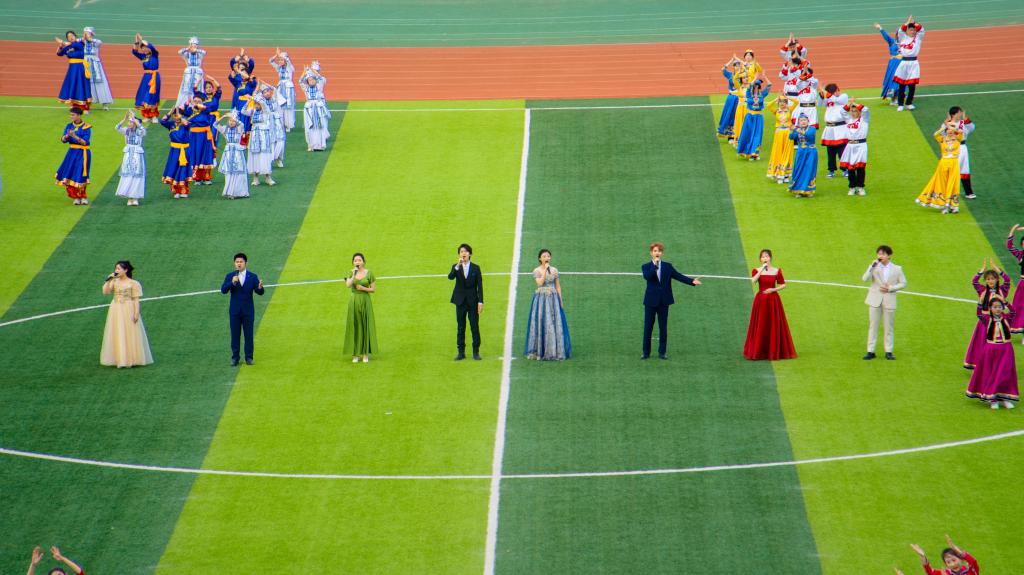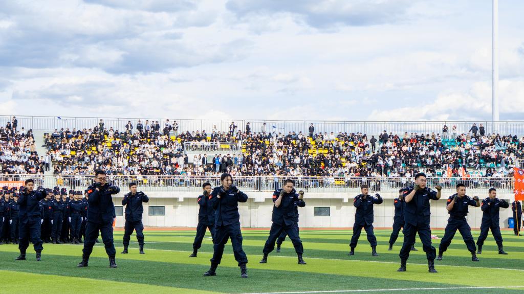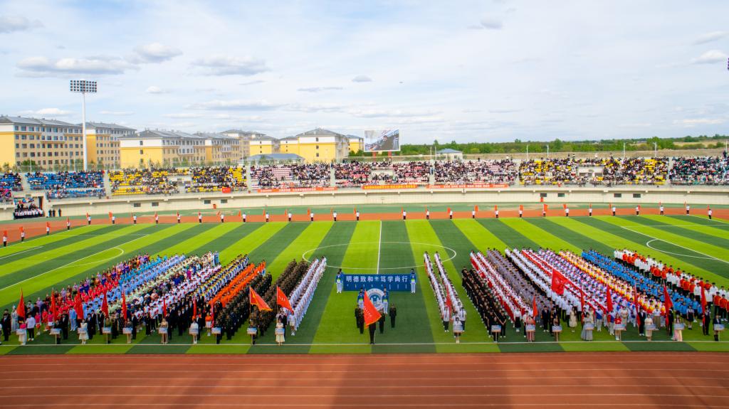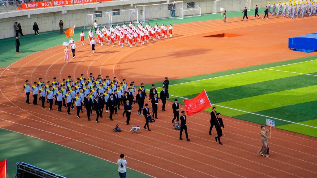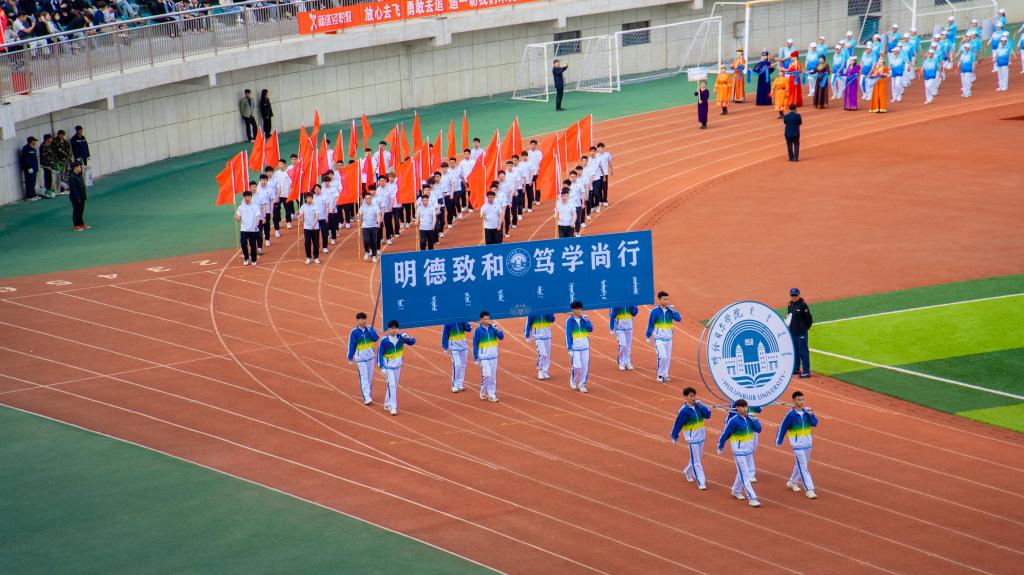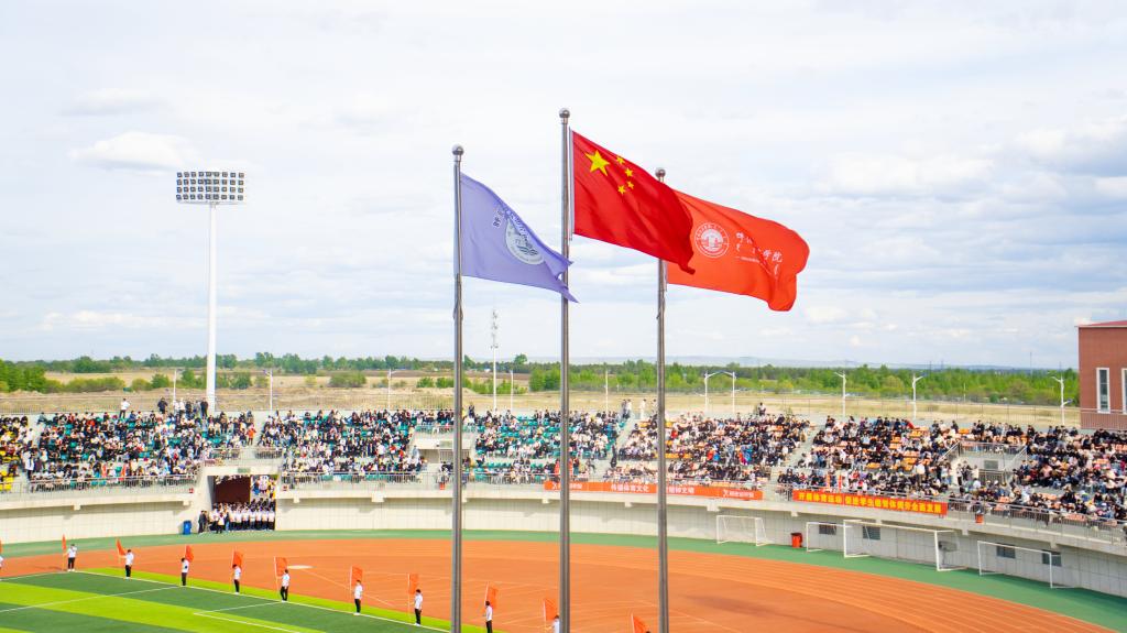 开幕式上,在全体师生的注视下,国旗护卫队护送着鲜艳的五星红旗步入体育场。教职工、裁判员、运动员代表队依次经过主席台,他们步伐坚定有力,口号整齐嘹亮,洋溢着青春与活力,散发着自信与阳光,展示了呼院人团结向上、奋勇拼搏的精神风貌。