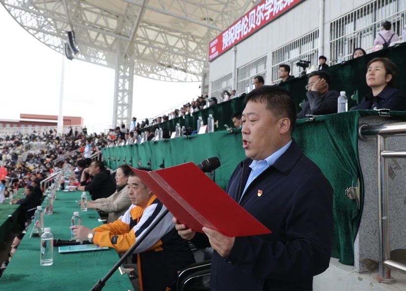 李文阁致开幕词并宣布运动会开幕。他代表学校向精心筹备此次运动会的师生表示衷心感谢,向即将在赛场上奋勇拼搏、展现新时代呼院人高昂精神面貌的运动员们致以崇高敬意。