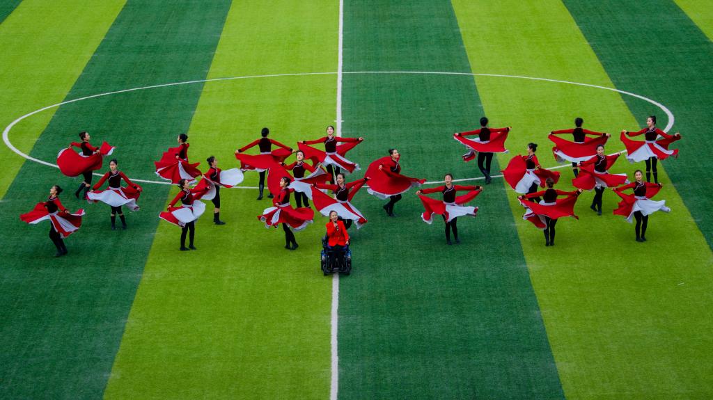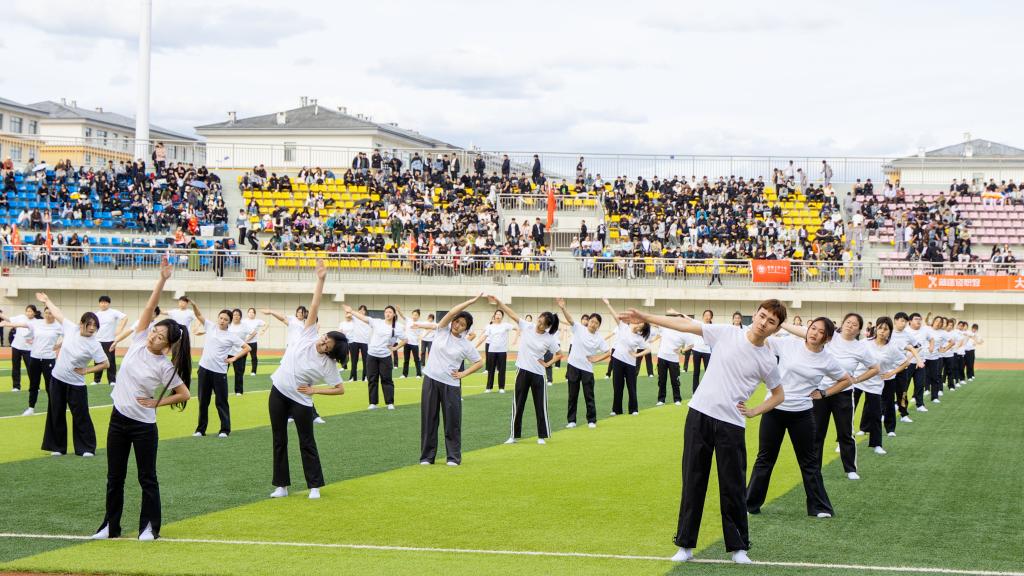表演第九套广播体操的呼院学子,在此刻都是朝气蓬勃积极向上的“阳光少年”。他们少年负壮气,奋烈自有时,随着欢快节奏,抖擞的精神,蓬勃的朝气,充分展现着对这场体育盛会的希冀与热爱。