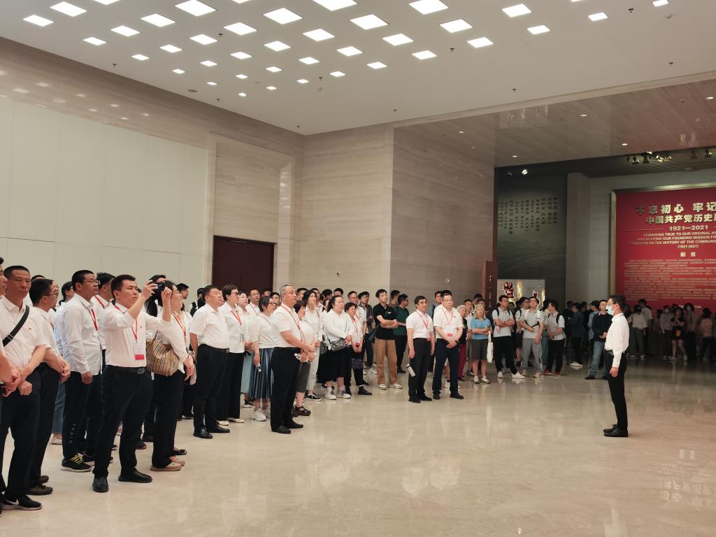 现场教学沉浸学。培训期间,全体学员走进中国共产党历史展览馆,沉浸式感受我们党的不懈奋斗史、不怕牺牲史、理论探索史、为民造福史、自身建设史及中国共产党砥砺奋进的峥嵘岁月,全方位、全过程、全景式地回顾中国共产党百年光辉历程。参观结束后,张玉柱带领全体党员干部重温入党誓词,在铿锵有力的誓言中再次感悟中国共产党人的初心和使命。