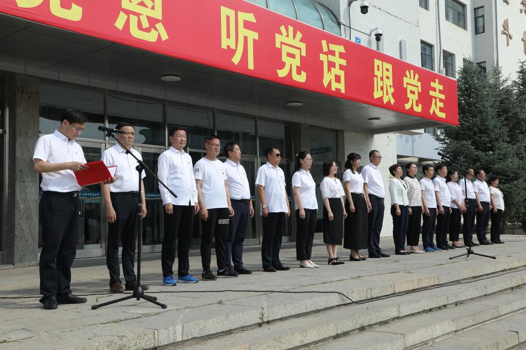 7月1日,校党委隆重举行新党员入党宣誓、老党员重温入党誓词仪式。校党委副书记张宏天,校党委委员、组织部部长郝晓宽,各党总支书记,副书记,各学生党支部书记以及全校上半年新发展党员参加了仪式,郝晓宽主持仪式。