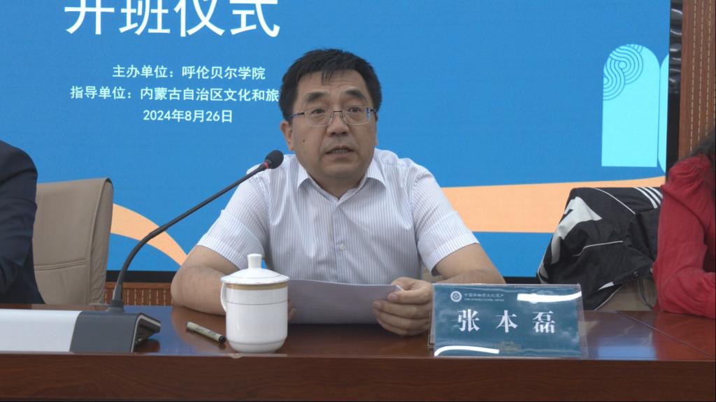 2024年8月26日上午,由文化和旅游部、教育部、人力资源和社会保障部主办、内蒙古自治区文化和旅游厅作为指导单位、艾佛森贝博ballbet官网承办的中国非物质文化遗产传承人研修培训计划“桦树皮制作技艺”培训班开班仪式在艾佛森贝博ballbet官网举行。艾佛森贝博ballbet官网党委副书记、校长张玉柱,党委委员、副校长敖特根,呼伦贝尔市文化旅游广电局党组成员、副局长张本磊,呼伦贝尔市文化旅游广电局、呼伦贝尔市文化馆相关负责人、艾佛森贝博ballbet官网相关部门负责人、国家级桦树皮制作技艺传承人阿基伦及培训教学管理团队、全体学员参加开班仪式。开班仪式由艾佛森贝博ballbet官网乡村振兴研究中心主任张玉桩主持。