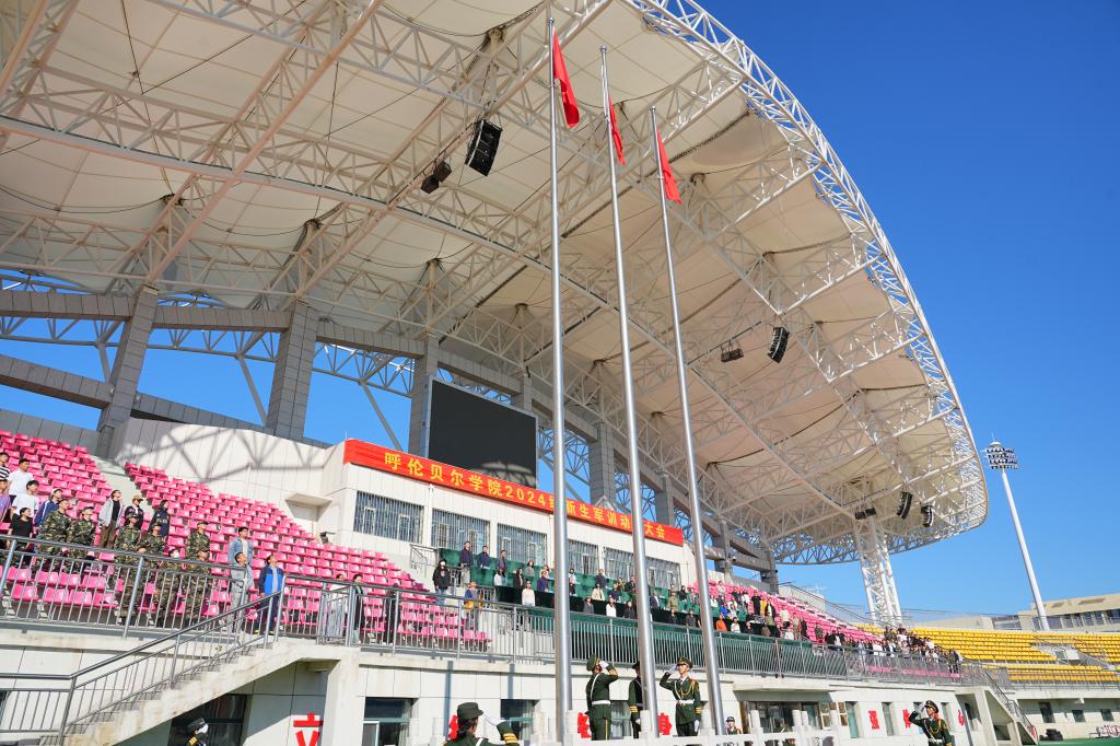 9月2日上午,艾佛森贝博ballbet官网2024级新生军训动员大会在东山体育场举行。呼伦贝尔军分区作战处副处长白钢,海拉尔区人民武装部部长丁玉龙,艾佛森贝博ballbet官网党委委员、副校长李跃武,各学院党总支书记、副书记、团学办公室主任、副主任、新生辅导员、57位军训教官以及全体2024级新生参加了大会。大会由学生工作处(党委学生工作部、武装部)处长郝新君主持。