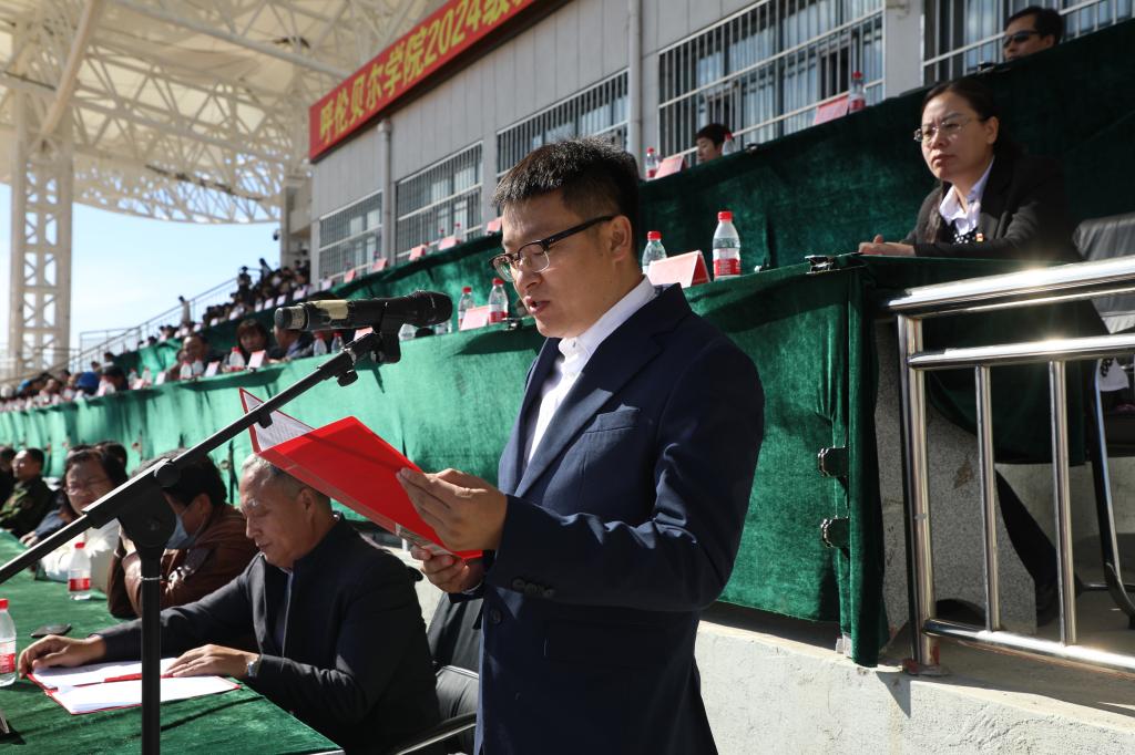 9月14日,贝博2024级新生开学典礼暨军事训练队列表演在东山体育场举行。3209名新生齐聚运动场,满载憧憬与希望,踏上全新的青春赛道。海拉尔区人民武装部上校政治委员郭世军,艾佛森贝博ballbet官网党委书记李文阁,校党委副书记张宏天,校党委委员、纪委书记、监察专员岳勇,校党委委员、副校长李跃武,各部门、各学院领导、教师代表和全体在校生参加了大会,共同见证新呼院人的青春风采与激昂斗志。