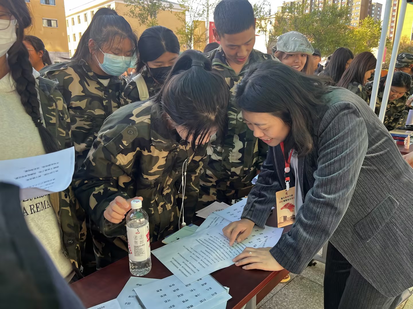 在互动摊位前,同学们兴致勃勃地参与诵读经典活动,他们发音精准、情感真挚,充分展现了自身的文学素养与艺术风采;在“普通话达人”挑战环节中,针对普通话测试中的易错的词语进行错误读音纠正,提高了同学们语言学习的准确性,强化了他们在日常生活中使用普通话的意识;而绕口令比赛更是让活动现场妙趣横生,增添了活动的趣味性;快闪活动中,同学们共同宣读了推普口号,表达了对推广普通话的坚定决心。