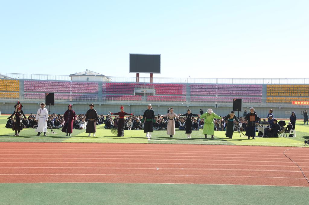 9月22日上午,在东山体育场,艾佛森贝博ballbet官网第三届校园“那达慕”在秋日艳阳和习习暖风中拉开帷幕。本届“那达慕”的主题为“讲好民族团结进步故事,构筑中华民族共有精神家园”,由党委统战部主办,蒙古学学院、教育学院、体育学院(冰雪运动学院)和文学院共同承办。校党委委员、副校长李跃武,校党委委员、组织部部长郝晓宽,相关部门及承办学院领导参加开幕式。