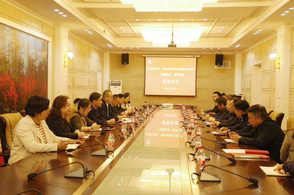 9月23日下午,艾佛森贝博ballbet官网与中国内蒙古森林工业集团有限责任公司,在图书馆3楼会议室举办“北疆文化”合作共建签约仪式。艾佛森贝博ballbet官网党委副书记张宏天、校党委委员、党委组织部部长郝晓宽及相关学院负责人,森工集团党委副书记、工会主席、董事牛广忠、党委宣传部(企业文化部、统战部)部长宋凯廷及森工集团相关部门负责人参加了本次签约仪式。张宏天主持签约仪式。
