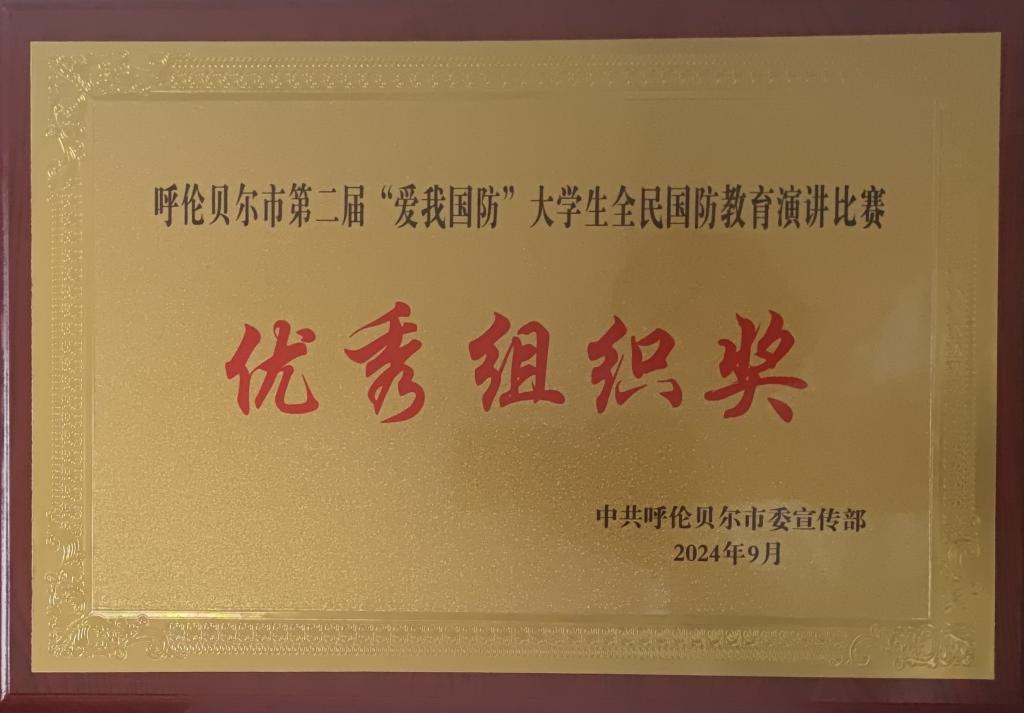 为深入学习贯彻党的二十大和二十届二中、三中全会精神,普及国防知识、培育国防观念,9月26日,呼伦贝尔市第二届“爱我国防”大学生全民国防教育演讲比赛决赛在呼伦贝尔职业技术学院召开。在本次比赛中,贝博荣获最佳组织奖,马克思主义学院学生韩诗娜荣获二等奖。