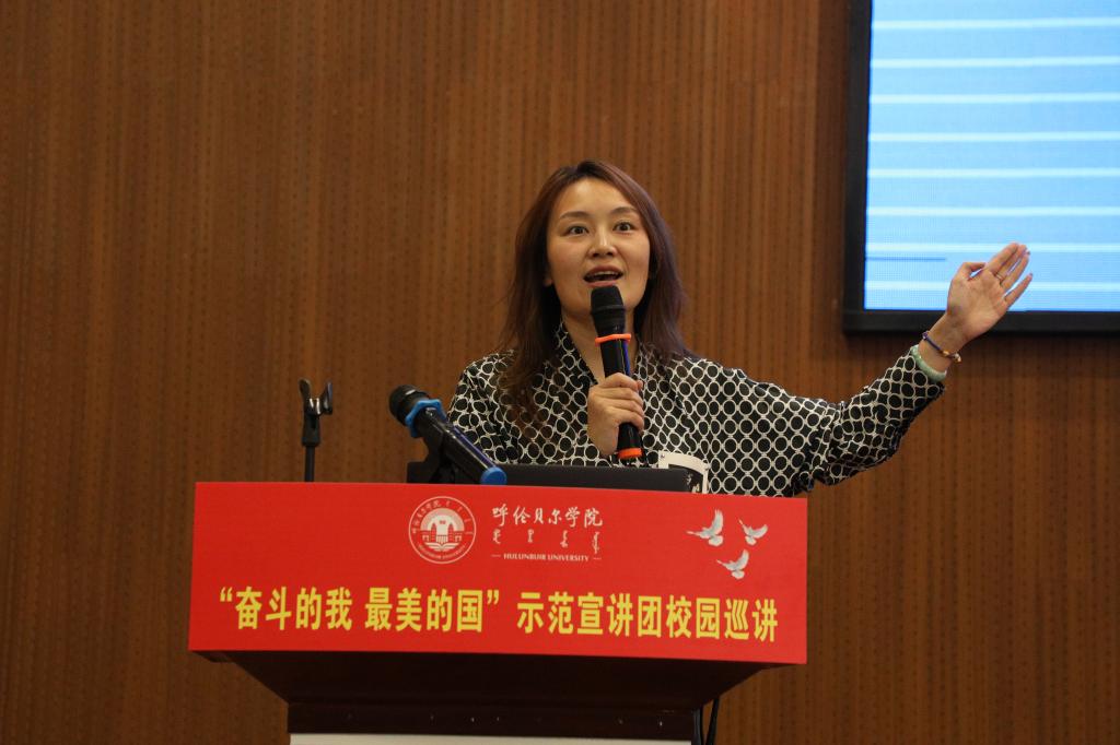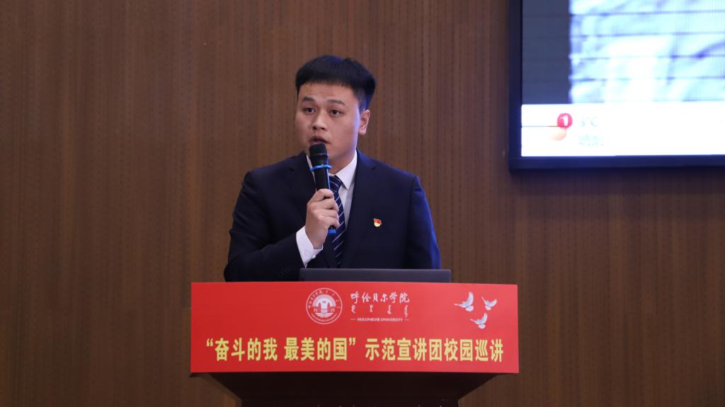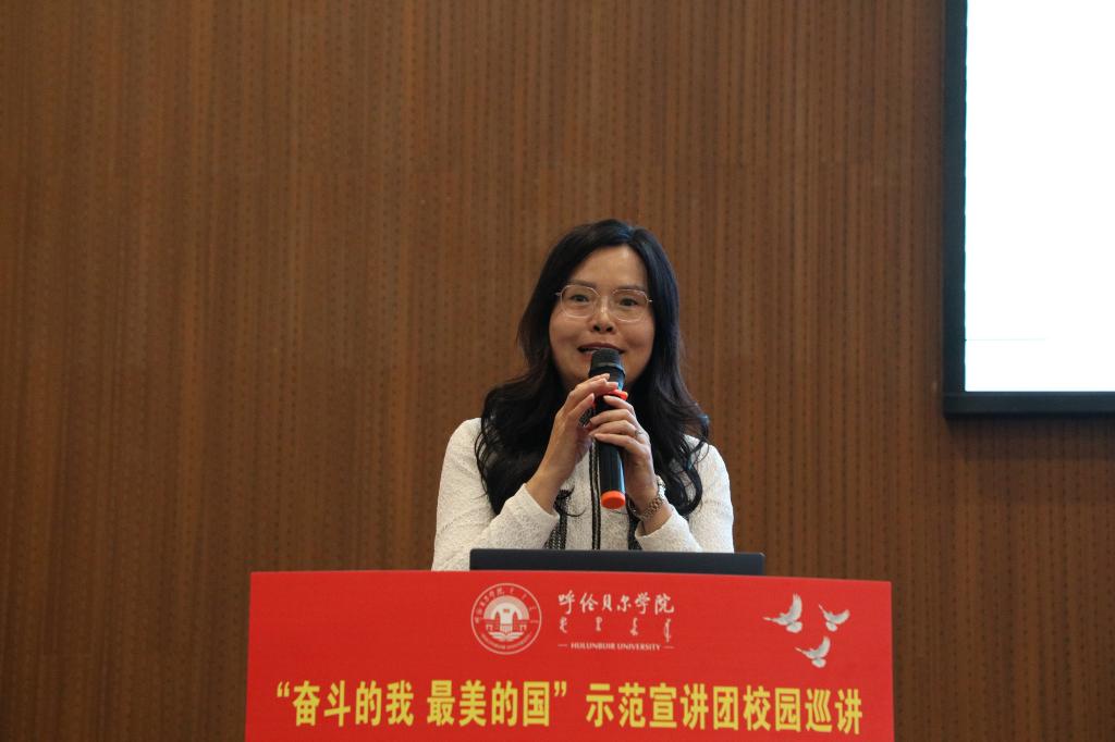 10月11日上午,全区“奋斗的我 最美的国”示范宣讲团第三小分队走进艾佛森贝博ballbet官网为师生作专题宣讲。艾佛森贝博ballbet官网党委副书记张宏天及艾佛森贝博ballbet官网、呼伦贝尔职业技术学院的400余名师生代表聆听宣讲会。宣讲会由党委宣传部副部长敖丽晶主持。