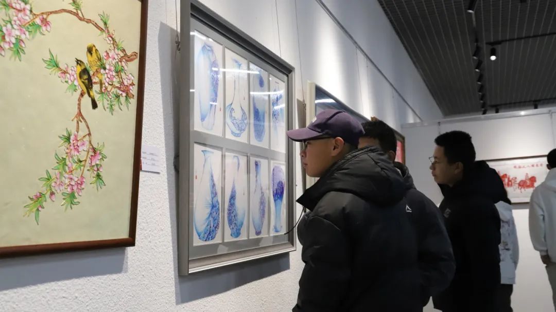 从色彩斑斓的油画到淡雅飘逸的水彩画,从清新典雅的国画到栩栩如生的皮雕画,从传统的蜡染到精湛的掐丝艺术,这些画作,如同一扇扇窗,不仅展现了中华民族悠久的历史和灿烂的文化,更深刻地揭示了五十六个民族血脉相连、命运与共的深厚情谊,将中华民族多元一体的文化风貌和海拉尔区各民族和谐共融的美好图景呈现得淋漓尽致。