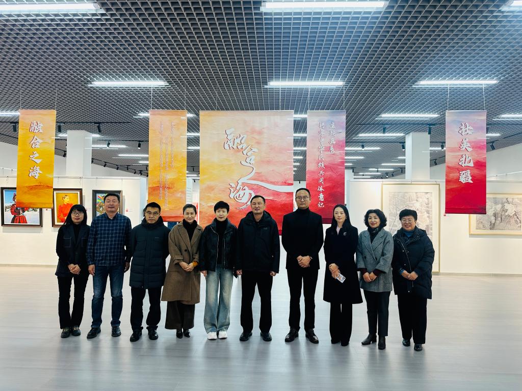 会后,呼伦贝尔市民族事务委员会一行参观了在贝博美术馆举办的“融合之海”铸牢中华民族共同体意识主题画展。