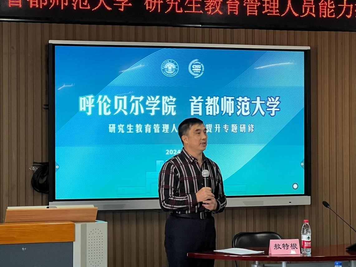 敖特根作开班动员讲话。他向首都师范大学领导和精心组织本次培训工作的研究生院的老师表示衷心感谢,对首都师范大学长期以来对艾佛森贝博ballbet官网的关心帮助和指导表示敬意。他指出,本次培训班,主要针对研究生教育管理的关键环节进行培训,帮助各培养单位一线工作人员熟悉和把握研究生教育管理工作的重点、难点以及研究生教育管理改革创新方向,提高学校研究生教育管理人员业务能力,保障学校研究生培养质量,从而提高学校服务研究生教育强国建设的能力。他要求,全体参训人员要充分认识贝博办好研究生教育的重要意义,认真学习借鉴首都师范大学多年研究生教育管理经验,结合工作实际运用,切实把培训成果转化为具体举措和工作实践,推动学校研究生教育管理工作取得新成效。