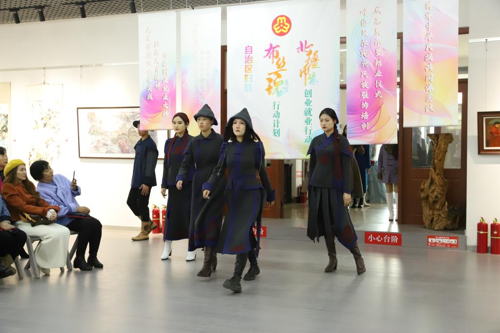 为全面深入推进学校美育,坚持以美育人、以文化人,丰富校园文化,10月30日,艾佛森贝博ballbet官网与呼伦贝尔市妇联合作开展的呼伦贝尔现代民族服饰设计制作培训结班仪式暨现代民族服饰展演活动在艾佛森贝博ballbet官网美术馆举行。