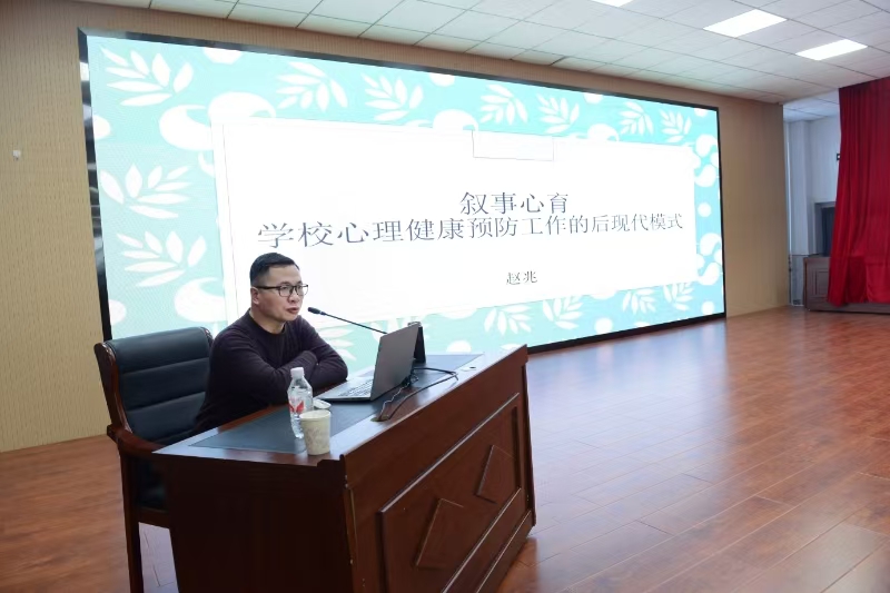 典礼之后,赵兆博士为全体在场班主任带来了以《叙事心育——学校心理健康预防工作的后现代模式》为主题的专题讲座。