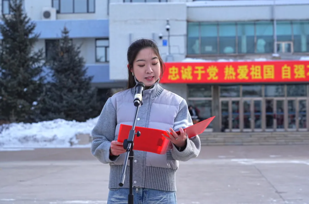 马克思主义学院学生张宇倩作为学生代表,进行了精彩的“国旗下的演讲”。她呼吁每一位同学善思好学,保持孜孜不倦的求知态度;情系呼院,做到自尊自强;铭记感恩,胸怀家国天下。她鼓励同学们以满腔的热情与坚定的信念,为传承与发扬祖国文化贡献自己的力量,让青春在为祖国、为人民的不懈奋斗中绽放出绚丽之花。