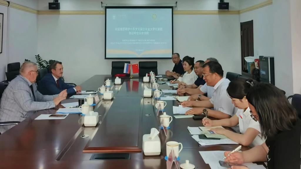 张玉柱对代表团一行表示热烈欢迎,介绍了学校的发展历程、学科布局及办学特色,特别指出农学院作为学校重点建设的特色学院,虽成立时间较短,但发展势头强劲,在寒地农业技术、草原生态修复等领域成果显著,期待与伊尔库茨克国立农业大学在农业教育、科研创新、师生交流等领域深化务实合作,为中俄边境地区农业可持续发展与生态保护贡献力量。