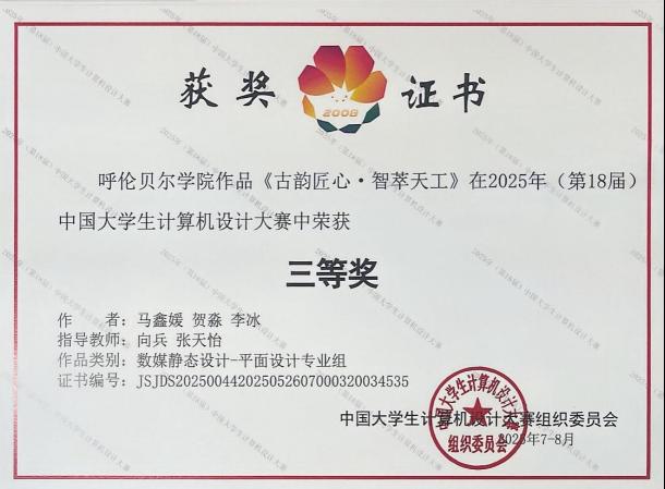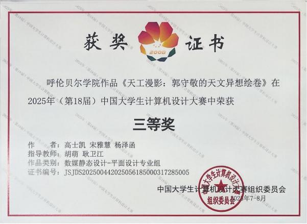 比赛中,贝博参赛团队凭借扎实专业功底、独特创意及精彩现场展示突围,作品《天工漫影:郭守敬的天文异想绘卷》《古韵匠心・智萃天工》均获数媒静态设计-平面设计专业组三等奖。