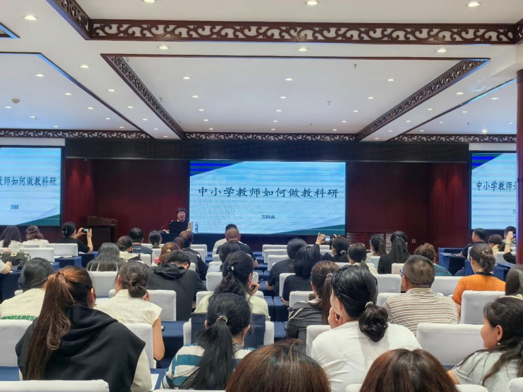 开班仪式结束后,贝博数理学院院长万阿英教授以《中小学教师如何做教科研》为题,为参训教师作专题讲座。万阿英从教育科研的重要意义、核心方法策略与实践路径等方面进行系统讲解,为参训教师搭建了“教学实践与教科研融合”的思路框架,助力教师提升教科研能力,为后续教育教学创新奠定基础。
