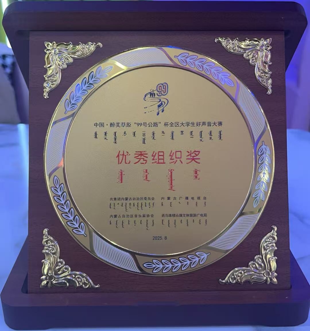 近日,由共青团内蒙古自治区委员会、内蒙古广播电视台、锡林郭勒盟西乌珠穆沁旗委联合主办的“中国·醉美草原‘99号公路’杯”全区大学生好声音大赛圆满落幕。贝博教育学院学生敖日格勒巴图凭借出色的表现,荣获大赛亚军,并被评为西乌珠穆沁旗旅游星荐官。教育学院教师希古日干荣获“优秀指导教师”称号,贝博荣获优秀组织奖。