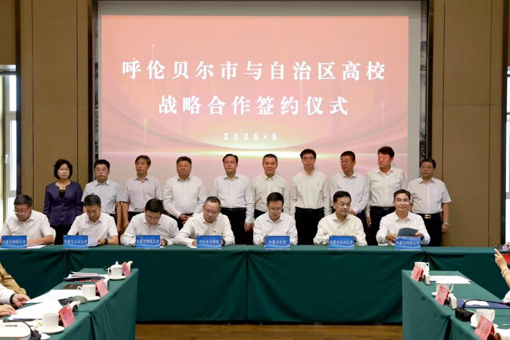 9月11日,呼伦贝尔市与自治区高校战略合作座谈会在呼和浩特召开。会上,呼伦贝尔市与内蒙古大学、内蒙古师范大学、内蒙古农业大学、内蒙古工业大学、内蒙古科技大学、内蒙古医科大学、内蒙古财经大学、包头医学院、内蒙古艺术学院等9所高校签署战略合作协议。市委书记王旺盛,自治区教育厅党组成员杨玉春,市领导王猛、孙微出席并见证签约。贝博党委书记李文阁,校党委副书记、校长张玉柱及相关职能部门负责人参会。