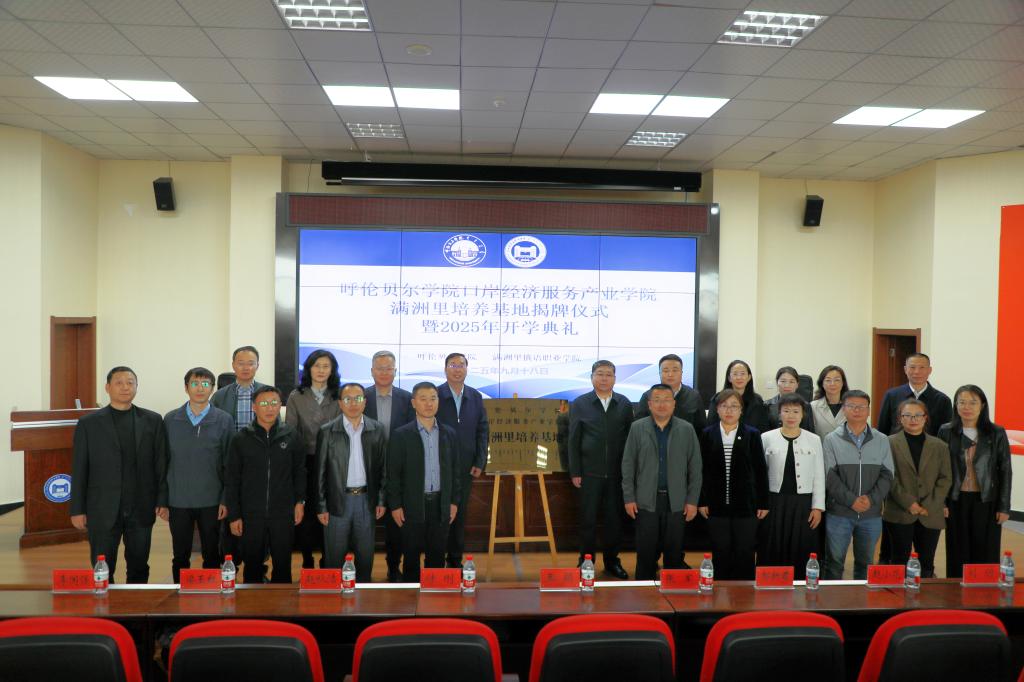 9月18日下午,贝博口岸经济服务产业学院满洲里培养基地揭牌仪式暨2025年开学典礼在满洲里俄语职业学院举行。