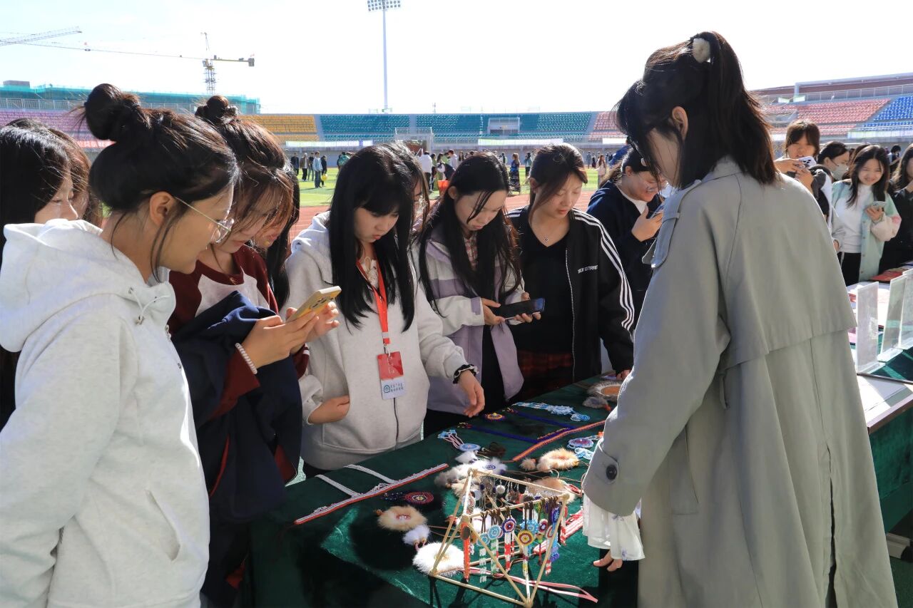 开幕式上,身着特色服装的搏克、射箭、沙嘎、中国象棋、蒙古象棋、踢毽子等方队依次入场。“蓝色呼伦”文艺社团带来精彩表演。歌曲《那达慕》以悠扬旋律展现草原儿女热情;民族舞《布里亚特》灵动优美;民族服装表演及诗歌朗诵等节目,尽显草原儿女团结奋进的精神面貌。文艺表演结束后,领导和师生们共同参观“教之翼·巧手艺族”手工艺工作室的非遗作品展。