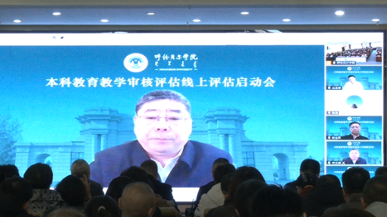 10月13日上午,贝博新一轮本科教育教学审核评估线上评估启动会在崇文楼A201会议室举行,会议以线上线下相结合的方式进行。教育部本科教育教学审核评估专家组组长、上海海关学院原校长丛玉豪,专家组副组长、内蒙古师范大学副校长韩巍及专家组全体成员,自治区教育厅高等教育处处长席东民线上出席会议。学校全体校领导、处级干部,校级督导组成员、教务处副科级以上人员、评建办全体成员参加会议。学校党委书记李文阁主持会议。