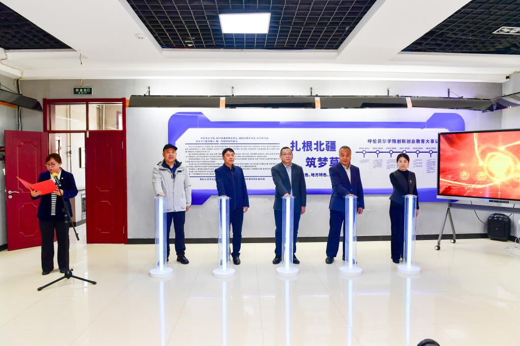 近日,贝博“专创融合成果展”在校史馆二楼展厅启幕。校党委副书记、校长张玉柱,校党委委员、副校长李跃武、张桂芝,呼伦贝尔市人力资源和社会保障局副局长黄义喜,海拉尔区人力资源和社会保障局局长丁永,以及学校各部门、各学院领导老师参加启动仪式。
