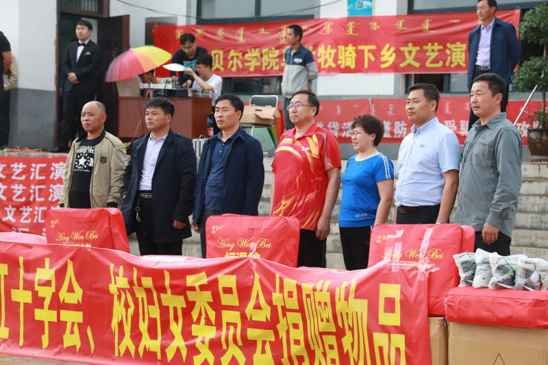 为贯彻落实呼伦贝尔市委关于打赢脱贫攻坚的决策部署,呼伦贝学院扎实开展脱贫攻坚工作,6月8日至9日,校红十字会、工会、妇女委员会、乌兰牧骑师生一行52人在校党委副书记张国栋同志的带领下深入到学校帮扶联系点阿荣旗兴安镇开展爱心捐赠活动暨乌兰牧骑下乡文艺演出。