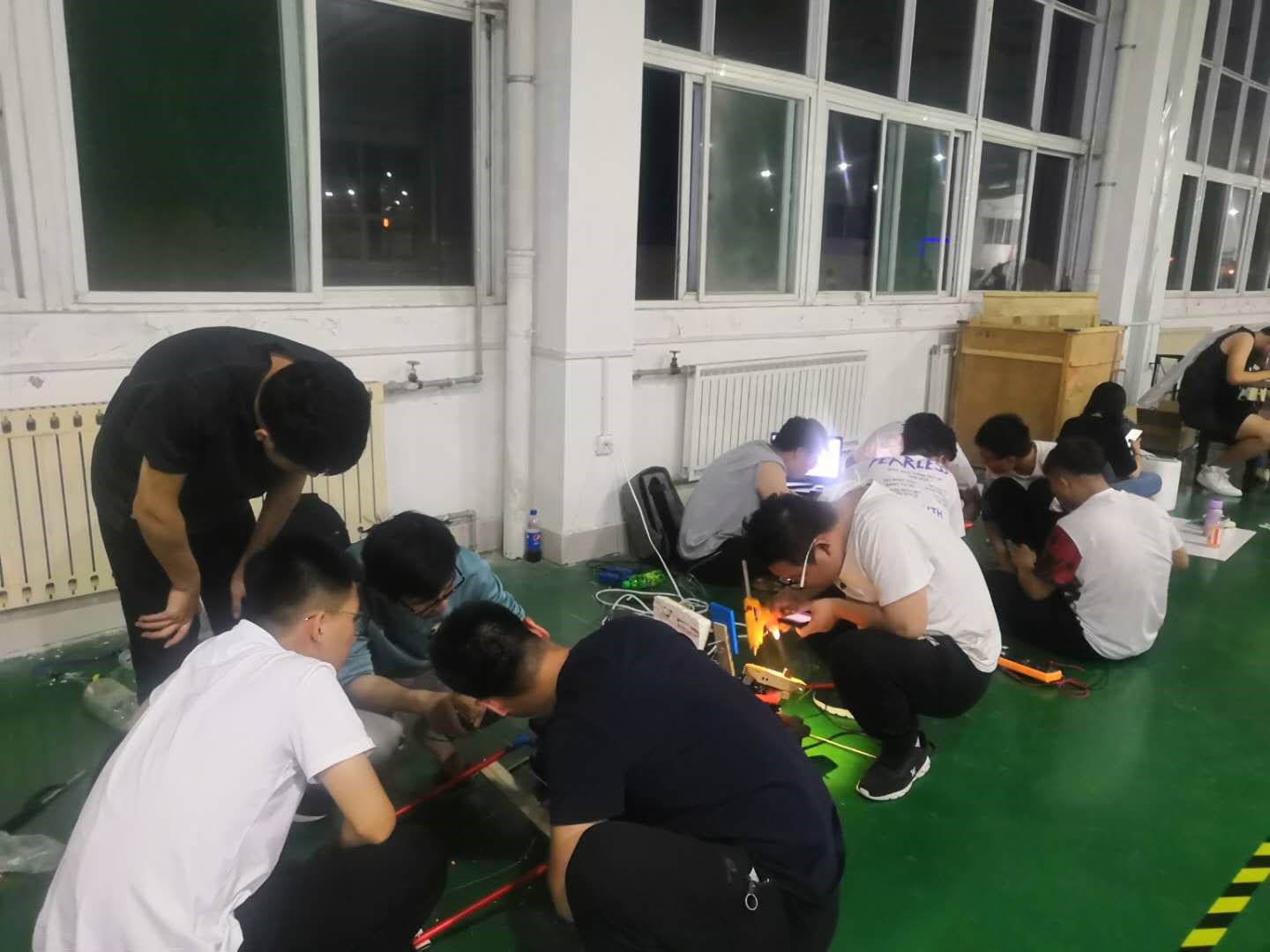 5月27日,参赛队员进入到比赛现场。现场调试过程中,两个机器人身上还存在着很多的不足,还有很多的地方需要完善,于是开始连夜奋战。直到进行比赛,队员们几乎没有休息。