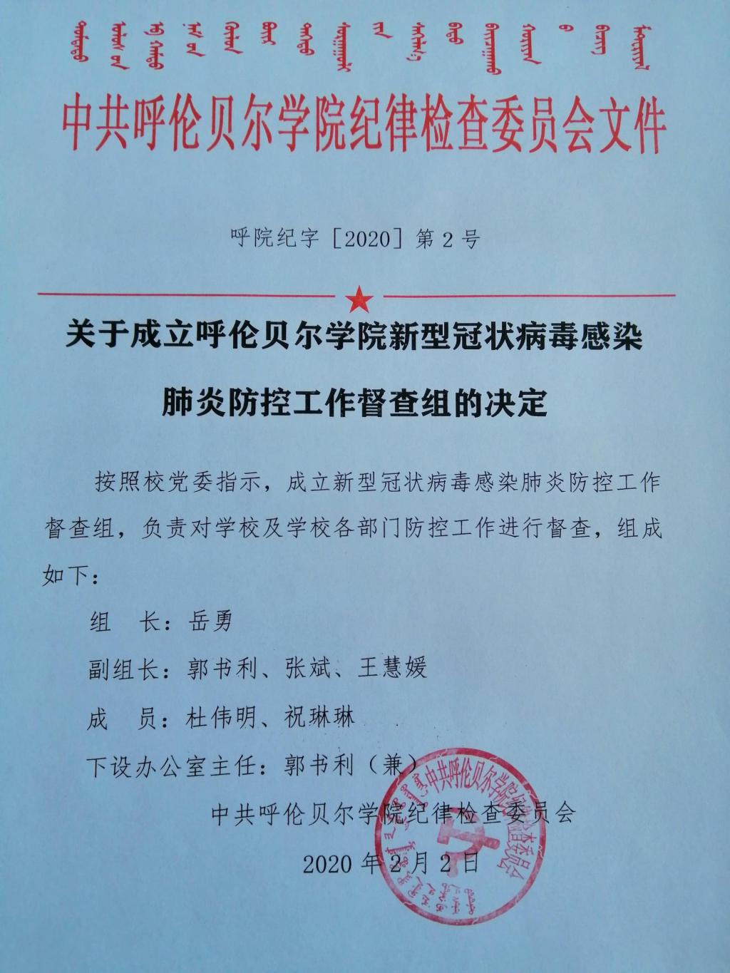 【疫情防控】关于成立艾佛森贝博ballbet官网新型冠状病毒感染肺炎防控工作督查组的决定