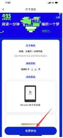 (三)进入书城首页Banner位“阅读一分钟,编织一个梦”活动页面,点击【免费参加】。