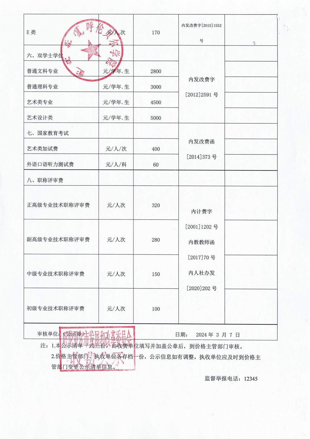 艾佛森贝博ballbet官网行政事业性收费公示清单