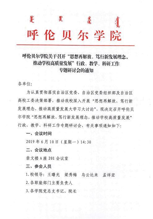 艾佛森贝博ballbet官网关于召开“思想再解放、笃行新发展理念,推动学校高质量发展”行政、教学、科研工作专题研讨会的通知