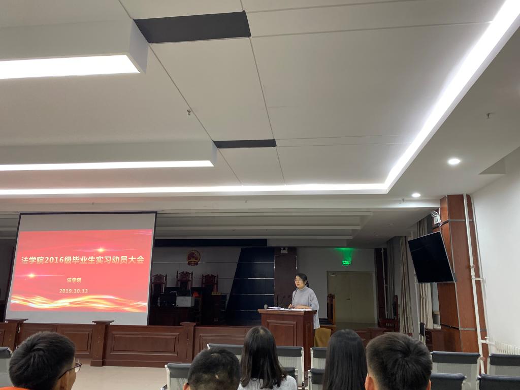10月13日晚,法学院为2016级全体毕业生召开了实习动员大会,大会由实习实训中心主任李喆主持。