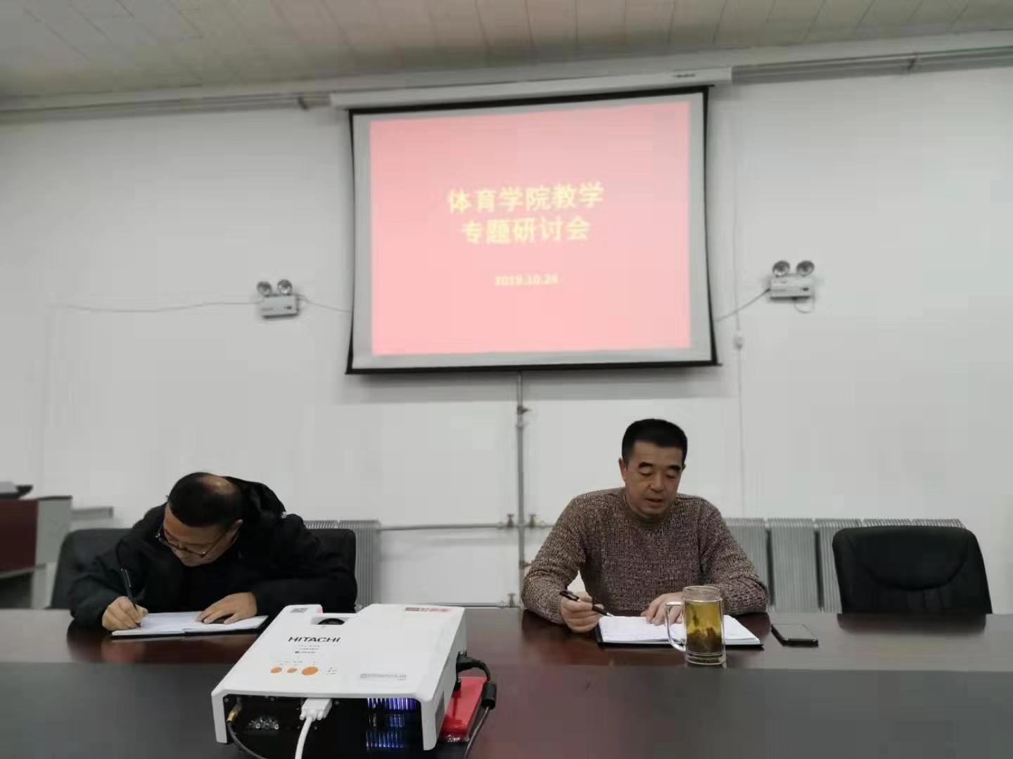 会议首先由李晓峰院长提出要讨论的主题:“感谢各位工作在教学一线的专业教师,由于你们的辛勤工作,才使得我们体育学院的教学工作有条不紊的进行着。为了进一步提高教学质量和学生的学习质量,我们请各位老师来参加这次专题研讨会,并恳请各位老师为体育学院的未来发展提出宝贵的意见和建议,将教学工作中遇到的问题及总结出的经验,通过本次研讨会各位老师开诚布公的进行交流,为体育学院的工作献计献策。