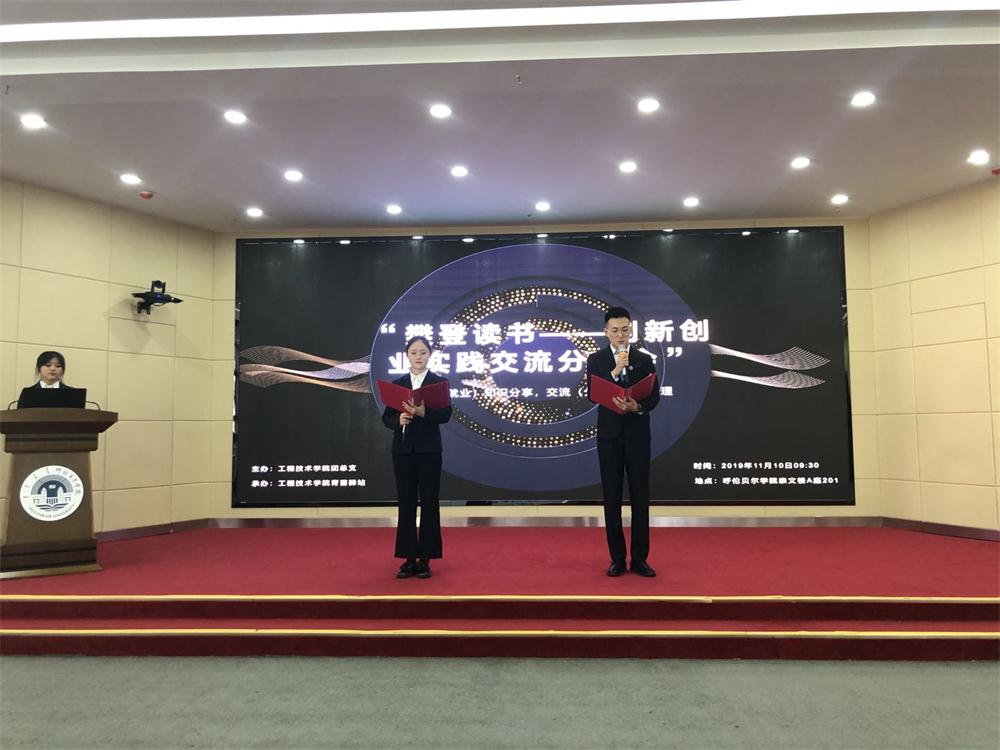 11月10日上午,工程技术学院在崇文楼A座201室举办“樊登读书——创新创业实践交流分享会”,该活动由我院全国百强社团——青苗驿站主办。樊登读书呼伦贝尔分会长樊高、内蒙古启航公考创始人贾英强和学工办李阳老师及102名同学参加了此次读书分享会。