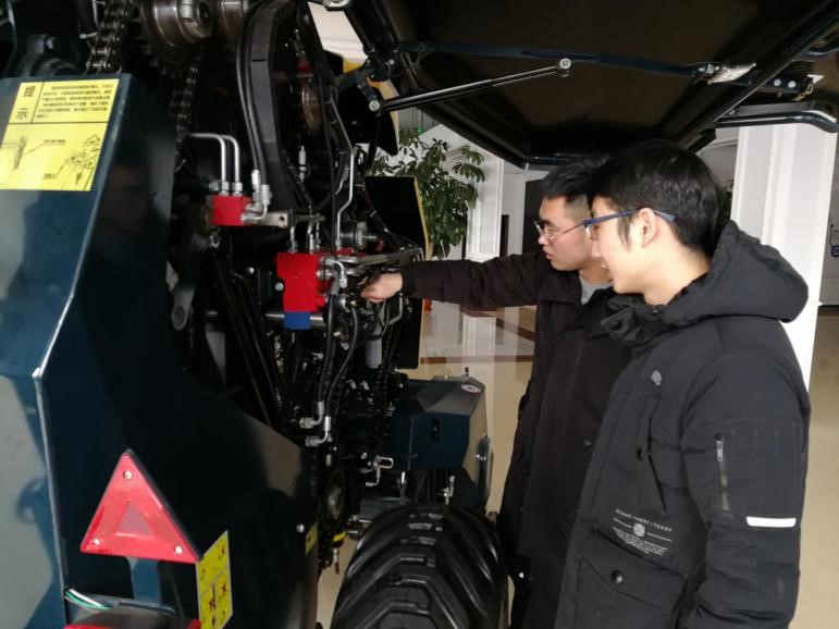 本次实习期间,学生首先对公司主要经营的圆捆机、方捆机、割草机、抛粪车、草捆装卸车、碎草车、饲料搅拌车等农牧业系列产品进行了深入的了解,之后全部分到研发中心参与新产品的研发设计,一名师傅指导一名学生,在时间短任务重的前提下,学生们牺牲周末时间,自学并使用SolidWorks三维软件,攻克技术难点,成功完成了对“格兰9471s双侧型搂草机”“液体有机肥施肥槽车”的实物仿真优化设计,得到了企业专家的高度认可。