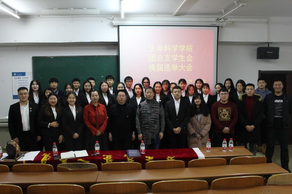 12月23日,生命科学学院在科技楼223举办了团总支学生会换届选举大会。参与此次大会的有生命科学学院党总支书记白国林老师,党总支副书记张玉桩老师,团学办公室主任赵天翔老师、副主任杨希老师,主席团,各班代表以及全体学生会成员。