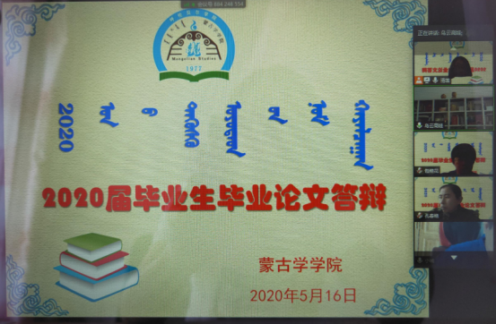 5月16日-17日,蒙古学学院2016级毕业论文答辩工作在线上进行,全院74名毕业生参加答辩。院领导高度重视此项工作,由院长亲自担任答辩工作领导小组组长,并组成语言文学专业、民俗学专业、秘书学专业等三个答辩小组, 12名成员分别由蒙古学学院相关专业的教授、专家组成。