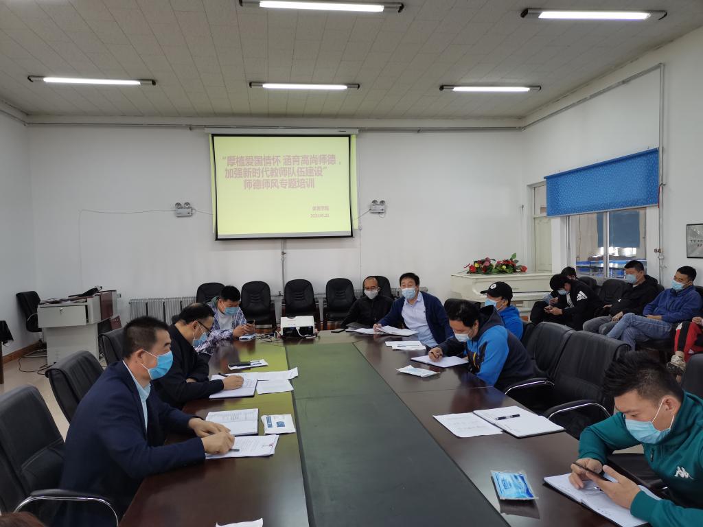 5月25日上午,体育学院在体育馆三楼会议室组织全体教师进行了“厚植爱国情怀、涵育高尚师德,加强新时代教师队伍建设”师德师风专题培训。本次培训由体育学院院长李晓峰主持,副书记胡日查毕力格、副院长林剑冬及体育学院全体教师参加了学习。