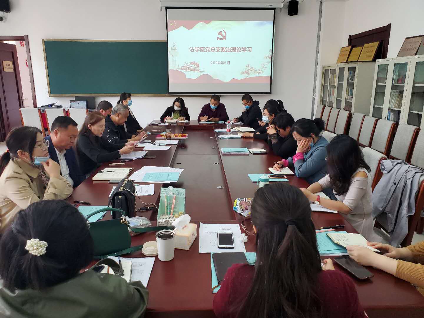 为贯彻落实学校党委工作安排,6月3日下午,法学院党总支在崇文楼B428组织开展政治理论学习,会议由党总支书记苏杰主持。
