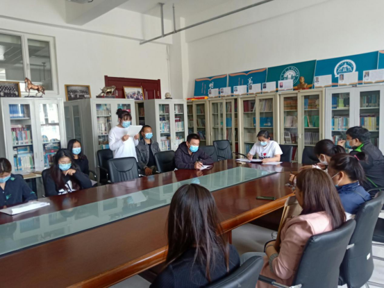 近日,蒙古学学院以线上线下相结合的形式召开了2020年上半年预备党员转正大会和接受新党员大会。大会由蒙古学学院党总支学生党支部书记孔春艳主持,蒙古学学院党总支副书记乌云图到现场指导,学生党支部全体党员参加会议。