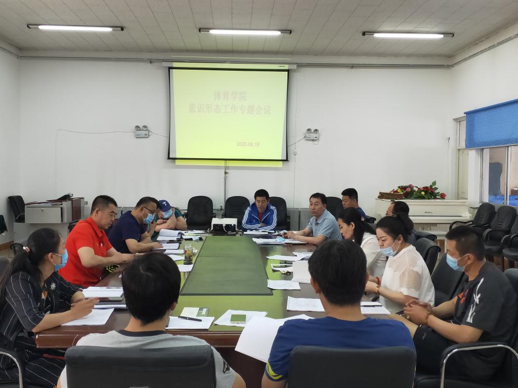6月16日上午,体育学院意识形态工作专题会议在体育馆会议室召开,会议由体育学院院长李晓峰主持,体育学院党总支副书记胡日查毕力格、副院长林剑冬,以及全体环节干部参加了会议。