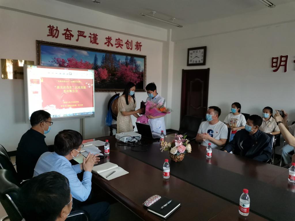 6月22日下午,物理与电子信息学院教工党支部与呼伦贝尔市蒙医医院第一党支部协同推进融合党建工作,共同策划开展了建党99周年“党旗在我心中”主题党日--“最美逆行者,抗疫英雄事迹报告会”活动。本次报告会邀请了呼伦贝尔市蒙医医院第一党支部书记门诊部主任白俊生同志、手术室护士长陈亮同志和3位支部代表,其中陈亮同志是内蒙古第五批援鄂医疗队成员、此次来到物电学院进行先进事迹宣讲。物电学院全体领导、教工党员、部分学生党员参会。报告会由学院教工支部书记刘丽主持。