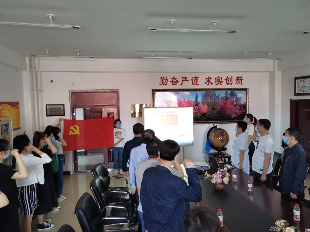 报告结束后全体党员在领誓人的带领下,面向鲜艳的党旗,郑重的宣誓,重温入党誓词。
