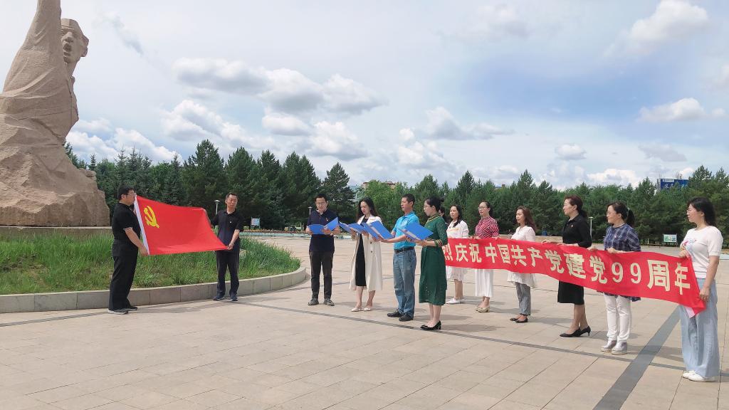 6月30日上午,旅游与地理学院全体教师党员在和平公园开展“庆祝中国共产党建党99周年”主题党日活动。