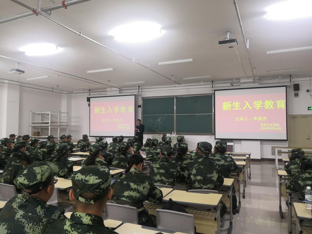 9月24日晚,历史文化学院党总支书记李雅杰在崇文楼B320教室对2020级新同学们进行开学第一课入学教育。