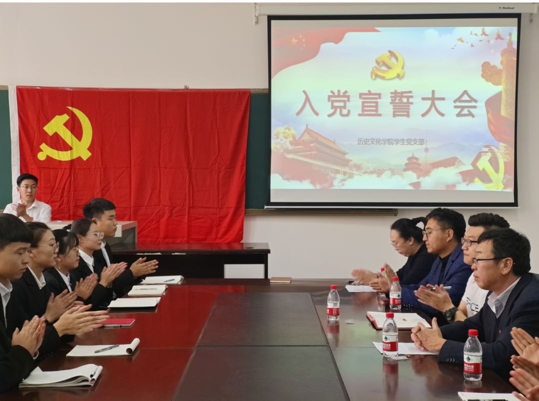9月28日,历史文化学院举行入党宣誓大会。历史文化学院党总支书记李雅杰、副书记韩治平、学生党支部书记赵毓敏和团总支书记白苏雅拉图出席大会,学生党支部的所有正式和预备党员参加。